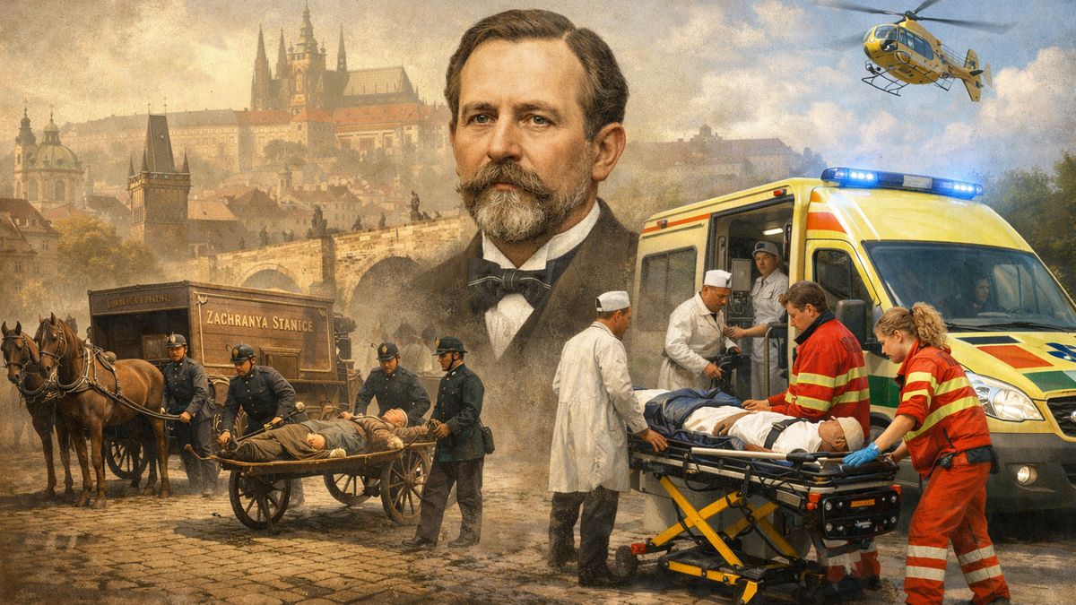 Představme si na chvíli jinou Prahu. Bez houkajících sanitek, bez blikajících majáků, bez dispečinků, které dnes bdí nad každým tísňovým voláním. Ulice jsou plné lidí, koňských povozů, hluku a prachu. A pak se to stane. Někdo upadne, jiný se zraní při práci, další se náhle sesune k zemi. Okamžik, který dnes automaticky spojujeme s příjezdem záchranky, tehdy znamenal něco docela jiného, nejistotu.