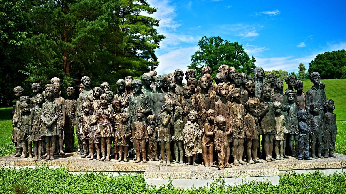 Na místě, kde kdysi stály Lidice, dnes roste tráva. Jen obrysy základů domů a kamenné kříže připomínají, že tu byl život. Uprostřed pietního areálu stojí sousoší od sochařky Marie Uchytilové, 82 bronzových dětí. Každá jiná, každá s vlastní tváří. Dívají se do dáli. Do prázdna.