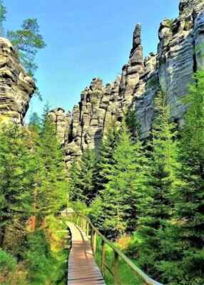 Vlčí rokle, která odděluje Adršpašské skály od Teplických, je jako hranice dvou světů. Ticho tam má jinou váhu. Když jdete večer, slyšíte, jak voda kapká ze stěn, a někdy se vám zdá, že v mlze zahlédnete postavu s Usarnou a kytarou, mizící mezi stromy. Možná duch některého ze starých trampů, kteří tu kdysi bloudili s mapou narychlo kreslenou do cancáku.