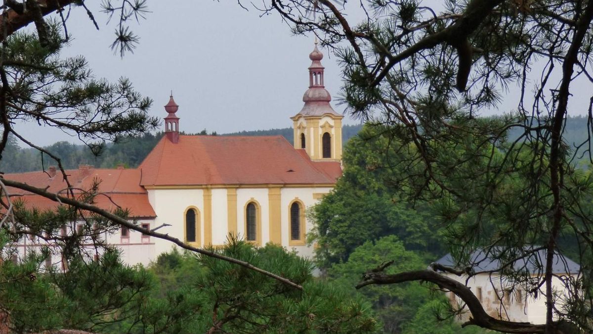 Nedaleko stojí kostel Panny Marie Sedmibolestné, navázaný na někdejší klášter. Náboženské stavby zde nepůsobí okázale, spíše skromně. Jsou součástí krajiny, ne její dominantou. I proto se s nimi člověk snadno sžije.