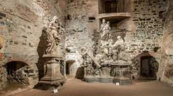 Ten přišel po druhé světové válce. Roku 1946 sem byly přeneseny originální sochy z Karlova mostu, aby se uchránily před povětrností a smogem. Dnes tu stojí tichá kamenná stráž, svatý Vojtěch, svatý Vincenc Ferrerský, svatá Luitgarda a další barokní svědci, jejichž tváře se ztrácejí v přítmí. Gorlice se tak stala největším podzemním výstavním prostorem v Praze, ale zároveň jakýmsi podzemním chrámem, místem, kde se mísí historie, umění a ticho.