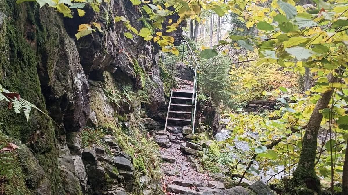 Řeka se zde z nenápadného potoka mění v dravou sílu, která si po tisíce let razila cestu žulovým masivem. Voda hučí, naráží do kamenů, tříští se v peřejích a mizí pod skalními převisy. Okolní lesy voní mechem a vlhkostí, a když člověk sejde z cesty, má pocit, že vstoupil do světa dávno zapomenutých pohádek.