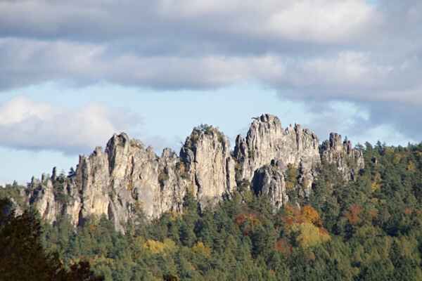 Cesta se zvedá, vítr zesiluje a najednou stojíme pod Suchými skalami. Ostré, hrdé, rovné. Vítr si s nimi povídá po svém. Nikdo nemluví dlouho. Taková místa se nekomentují. Eliška si sedne na kámen a prohlásí, že by tady klidně bydlela. Tony přestane mluvit úplně. Barča fotí jen jednou. Víc by bylo zbytečné.