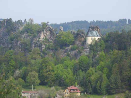 Od Michovky se pokračuje zacházkou na Suché skály, výraznou skalní dominantu, která stojí za každý krok navíc. Trasa dál k hradu Frýdštejn, odkud vede pohodová cesta podél Jizery.