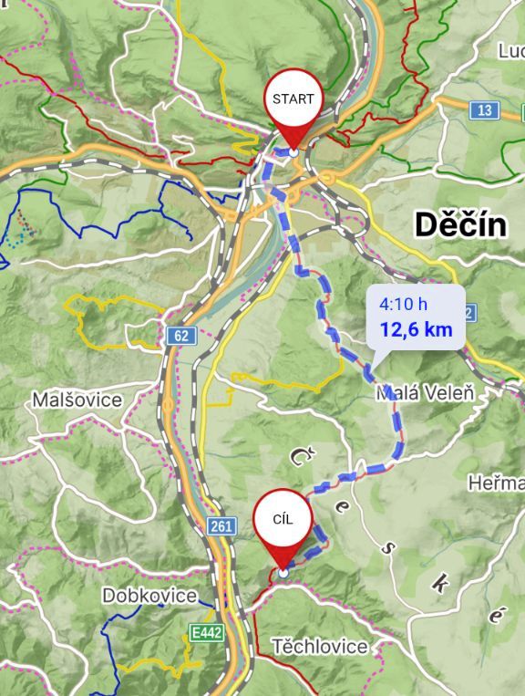 Z Děčína se napojíš na červenou turistickou značku, která vede podél pravého břehu Labe směrem na jih. Úvod trasy je pohodlný a vede městským prostředím, postupně však přechází do klidnější krajiny labského údolí. Cesta nabízí otevřené výhledy na řeku i okolní svahy Českého středohoří. V oblasti Těchlovic se trasa stáčí od řeky a začíná výraznější stoupání lesním terénem. Závěrečný úsek vede po užší stezce na čedičový vrchol Vrabince. Odměnou je výrazná vyhlídka do labského údolí a okolní krajiny.