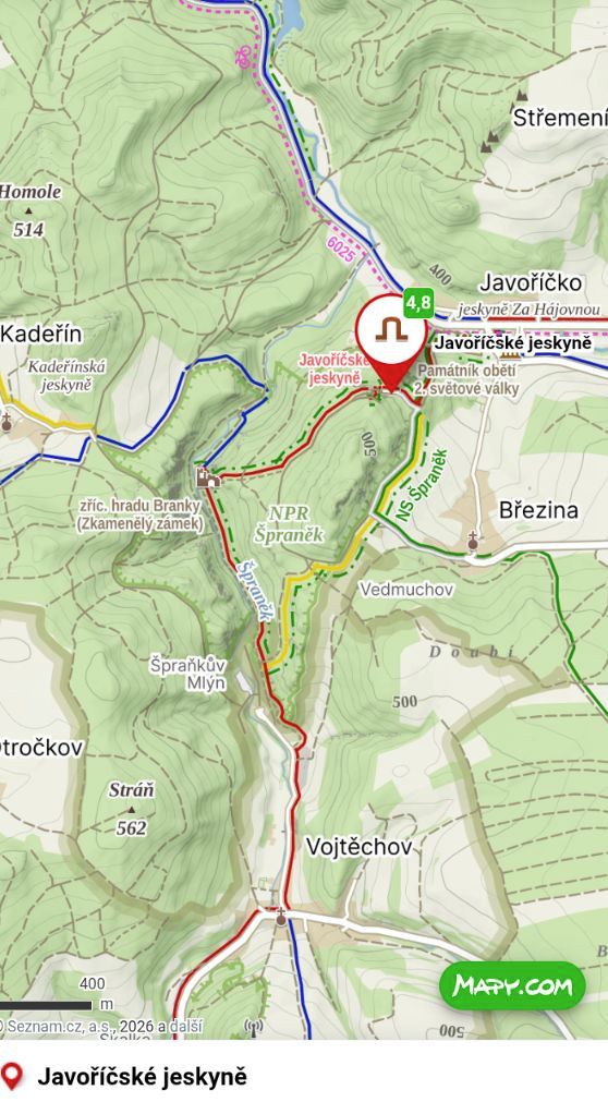 Ze středu obce Javoříčko se napojíš na červenou turistickou značku, která tě vyvede mezi posledními domy směrem k lesu. Už po několika minutách chůze se krajina začne tišit a cesta se ponoří do typického prostředí Javoříčského krasu.