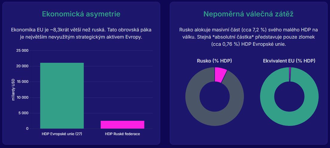 Základem jakékoli efektivní strategie je realistické posouzení zdrojů. A v tomto konfliktu je největším, avšak dosud nevyužitým, strategickým aktivem Evropy její drtivá ekonomická převaha.