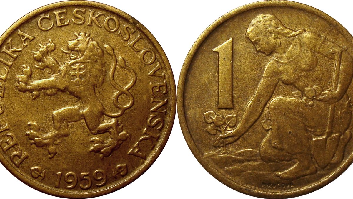 Jednokorunová mince před rokem 1992 měla na jedné straně samozřejmě státní znak. Na té druhé byla potom vyobrazena mladá žena, která sází malou lípu, tedy český národní strom. Autorkou tohoto návrhu byla sochařka Marie Uchytilová-Kučová a mince se dostala do oběhu 2. září roku 1957.