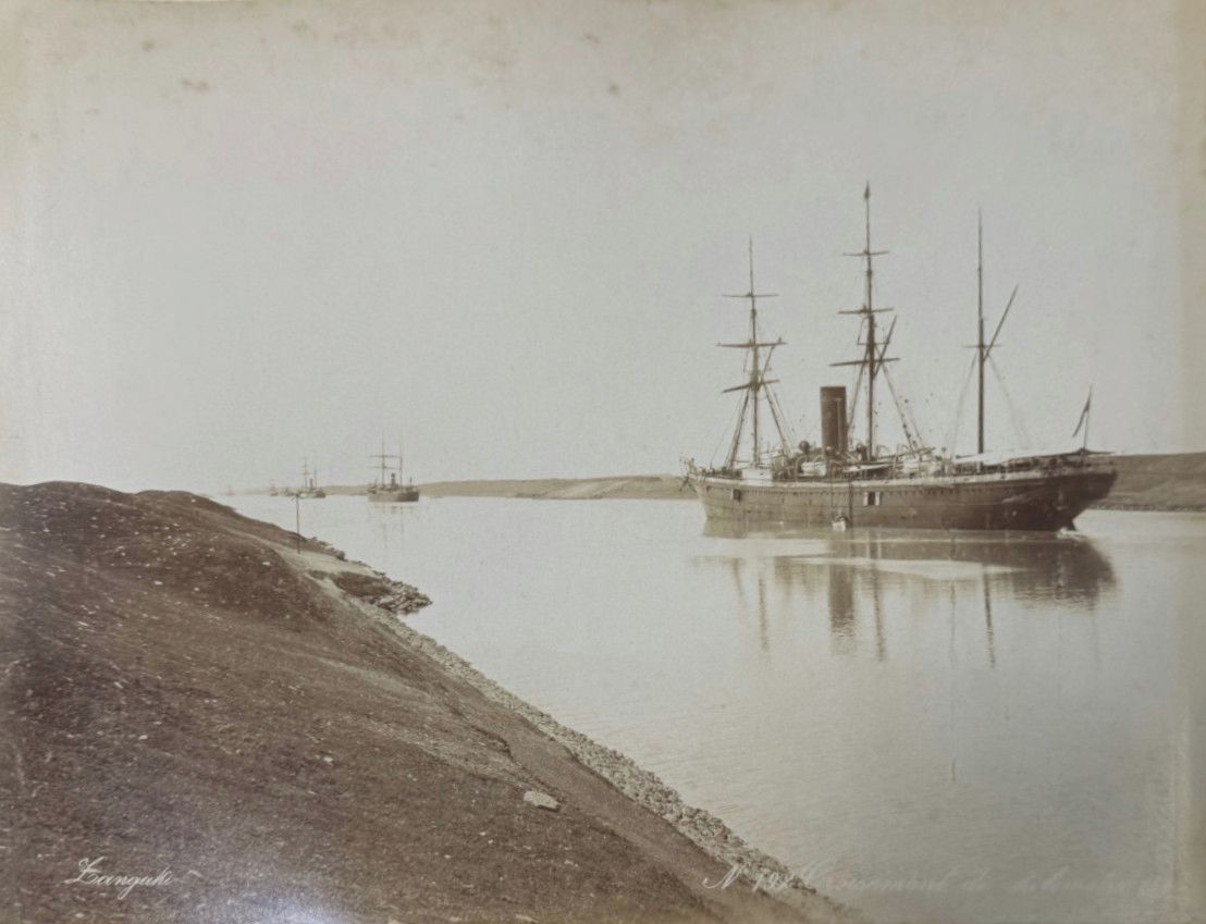 Suezský kanál, další z děl Aloise Negrelliho, na staré fotografii.