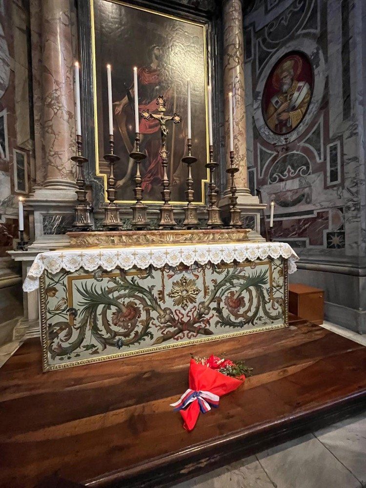 Díky téměř tři sta let staré nadaci biskupa Hynka, která zavazovala kanovníky k pravidelným bohoslužbám u oltáře českého patrona, jej podle webu rome.czechcentres.cz dosud najdeme v jedné z výklenkových kaplí severního transeptu navržených Michelangelem. Autorem oltářního obrazu je římský malíř Angelo Caroselli, který jej vytvořil mezi léty 1627-1630. Malířova bližší neobeznámenost se světcovou ikonografií způsobila, že není zachycen s obvyklou knížecí čapkou, nýbrž s korunou, coby obecným atributem svatých vládců. Po stranách oltáře jsou obrazy našich věrozvěstů sv. Cyrila a Metoděje z pozdější doby.