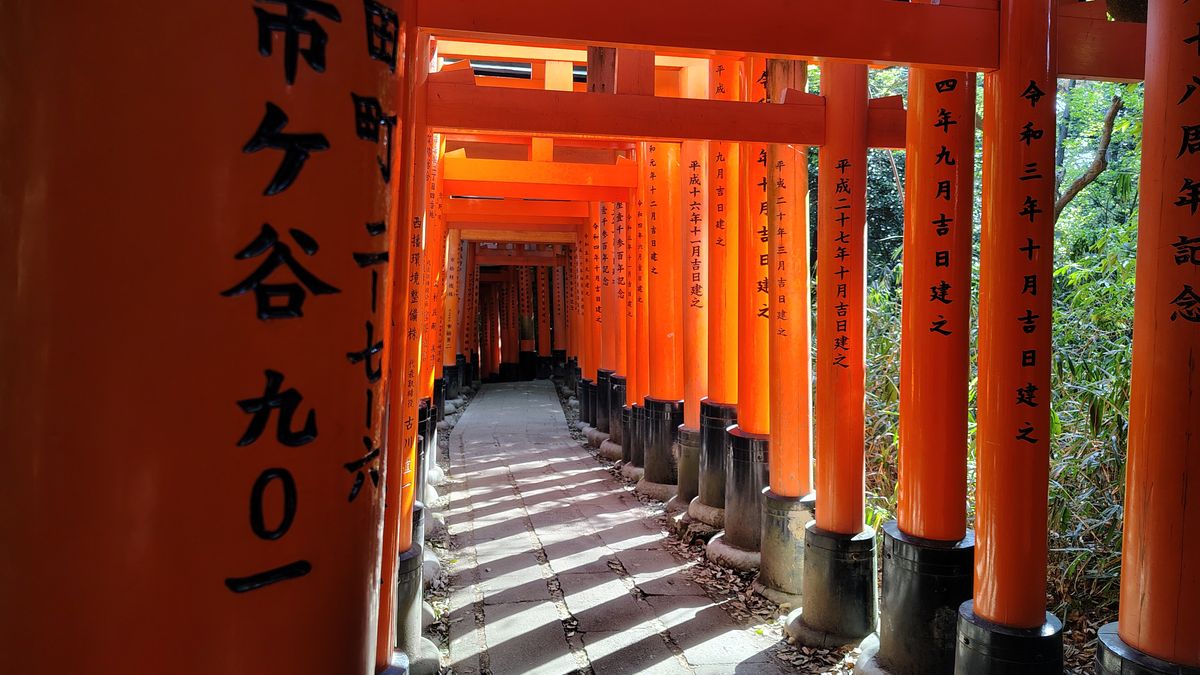 Tohle místo je zasvěcené božstvu Inari – ochránci rýže, úrody, obchodu a prosperity. A právě proto tady stojí víc než 10 000 bran, z nichž každá má svého dárce. Na zadní straně najdete jeho jméno i datum věnování. Není to jen architektura; každá brána je vlastně modlitba.
