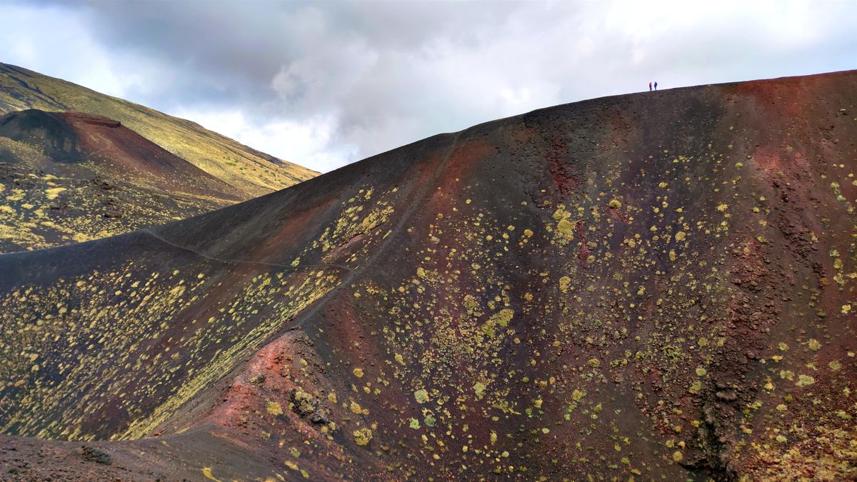 Doteky. Dlaně položené na sopečných vyvřelinách, i v lávovém prachu. Představivost. Jak asi vypadala tahle zóna, když vše kolem bylo žhavé, v pohybu. Vnímavost. Vítr. Slunce. Ticho. Etna. A uvědomění si, že ač je na první pohled krajina nehostinná, drsná a temná, při pozorném vnímání je stejně tak hojná, vlídná a krásná. Že černé i rudé kusy lávového kamene jsou ostré, jako šmirgl, některé hrany, dokonce jak žiletky. A přesto se dá do jejich výklenku hezky schoulit před větrem a odtamtud pozorovat tenhle kosmos. Že zdánlivě to vypadá, jakoby tu nebyl život. A přesto si právě tady, na území Etny, zbudovaly četné kolonie roztomilé berušky. Trsy travin tu a tam zdobí údolí a ti dravci kroužící nad vyhaslými sopečnými průduchy tu také nejsou náhodou.