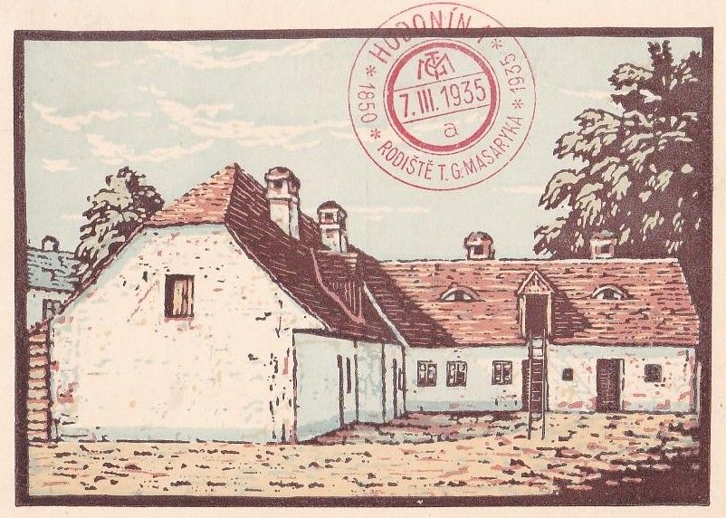 Rodné stavení T. G. Masaryka v Hodoníně. Domek čp. 121 v pozdější Školské ulici byl roku 1898 zbořen.