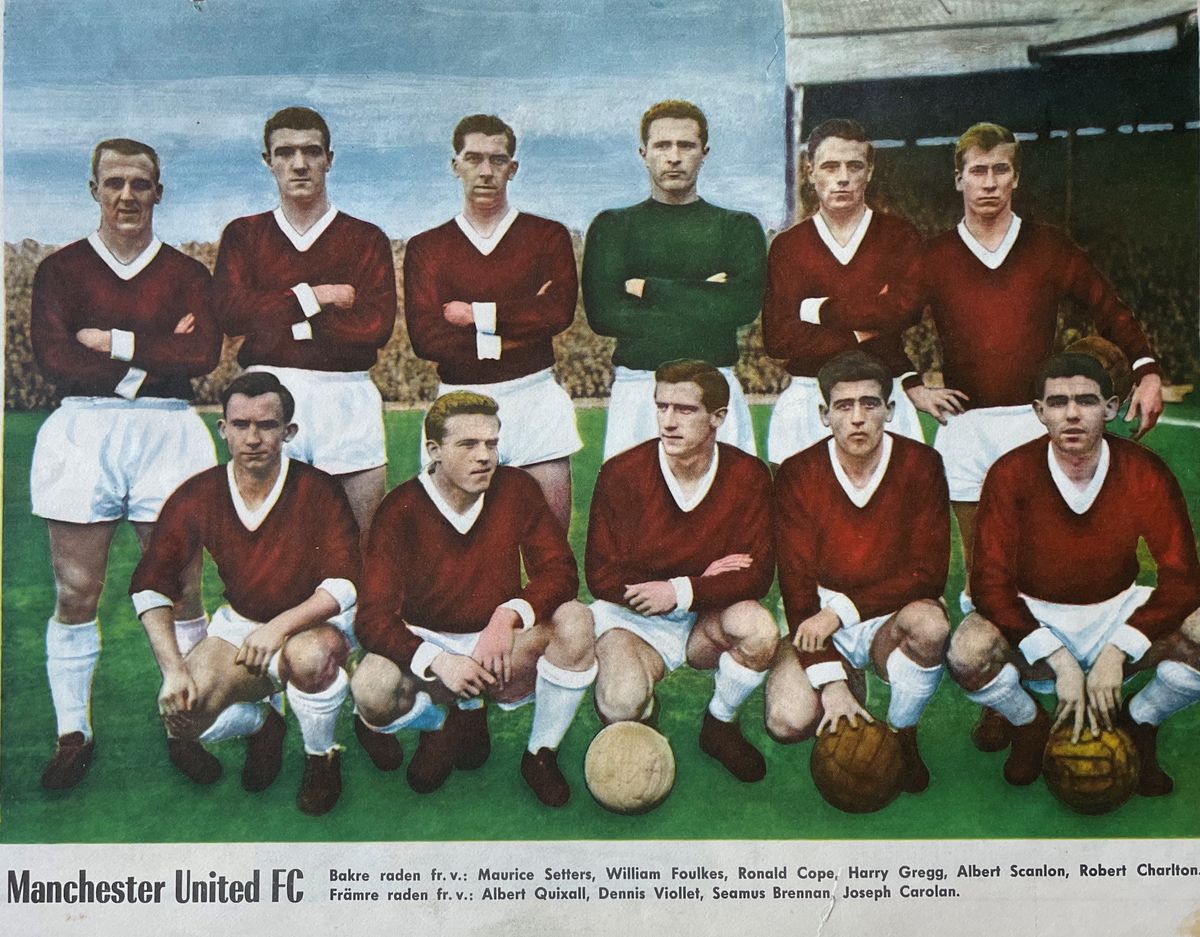 Fotografie nového týmu z roku 1960 - Harry Gregg uprostřed v zeleném