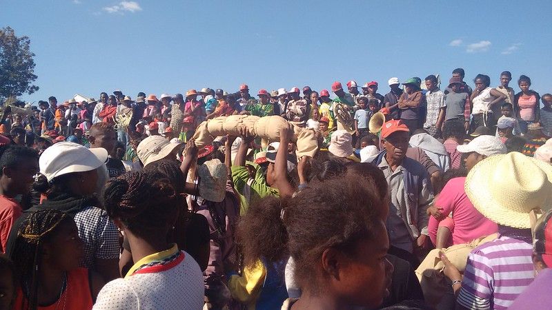 Jednou za 5-7 let rodiny žijící na Madagaskaru vyndávají z hrobů své zemřelé. Těla mrtvých se vyjmou z hrobů (tedy spíše to, co z nich ještě zbylo) a obalí se do nového sukna. Poté se s nimi tančí, zpívá a slaví.
