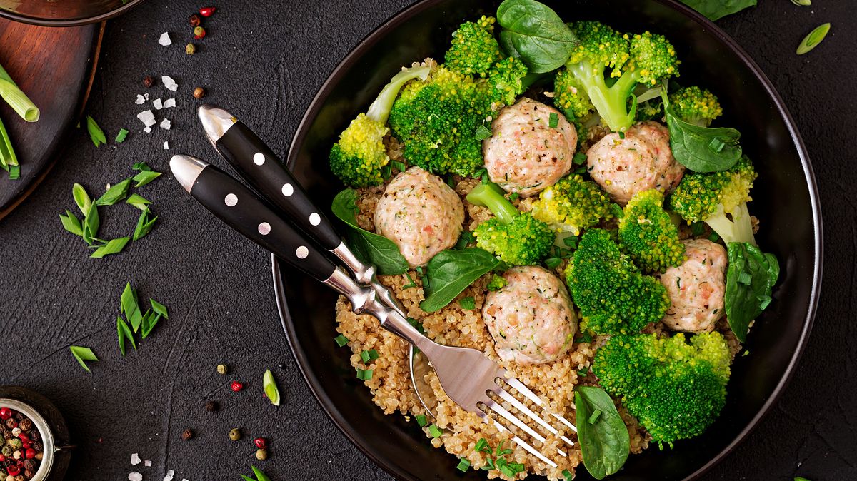 - Brokolici krátce povařte nebo připravte v páře. Vše servírujte dohromady, doplňte čerstvým špenátem.