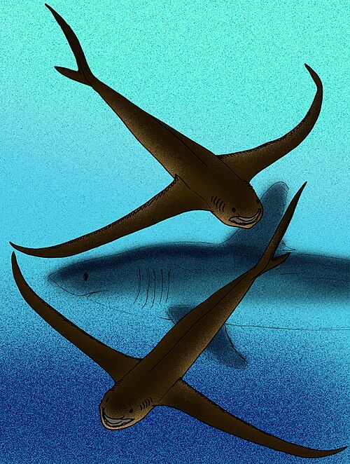 Tato trojkombinace v jednom provedení zní poněkud zvláštně. Ovšem v dobách období křídy to nic zvláštního nebylo. Mořskými hlubinami se opravdu proháněl tvor, který tyto tři tvory připomínal. Zadní část těla byla jako dělaná na žraloka, postranní ploutve by člověk připsal mořskému orlovi a předek byl jasný rejnok. A toto vše byl opravdu křídový žralok.