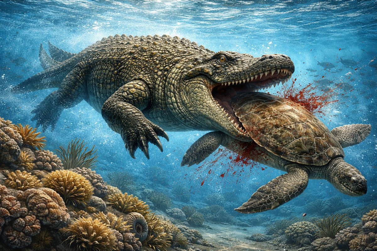 Ačkoliv měl robustní tělo, chráněné pancíři, i on nebyl v moři jediným dravcem. Konkurencí mu mohli být jiní plesiosauři, kteří byli rychlejší, pak velcí ichtyosauři a další mořští krokodýli. Díky svému pancíři nebyl úplně snadnou kořistí, takže spousta nepřátel riskovala, že bude doživotně při nejmenším bezzubá. A zubař v nedohlednu.