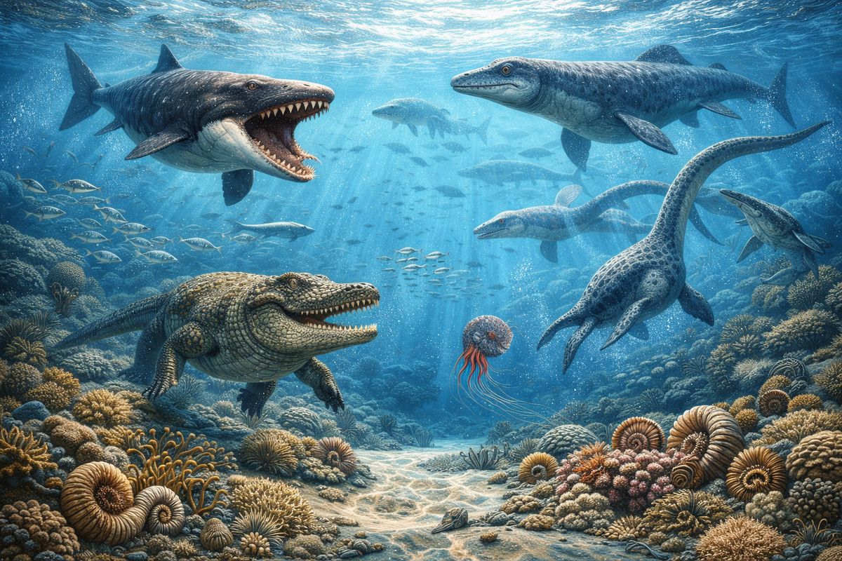 V pozdní juře před 155 miliony lety nebyl oceán tak hluboký, jak bychom si představovali dnes. Byl to mělčí svět, bohatý na podmořský život, který tu měl ideální podmínky pro blahobyt. Moře bylo teplé, mělké, nacházelo se zde spoustu prostoru pro ryby, větší dravce a predátory. Svým způsobem by se dalo říct, že bylo rozděleno na tři patra. V nejnižším patře, tedy na samotném dně, se nacházeli amoniti, mlži, ostnokožci a velké želvy. V prvním patře již byli přítomni ichtyosauři, plesiosauři a dravé ryby. Druhé patro, tedy u hladiny, tvořily ryby v hejnech, nebyla tu nouze o létající pterosaury a občas mrtvé tělo dinosaura z pevniny.