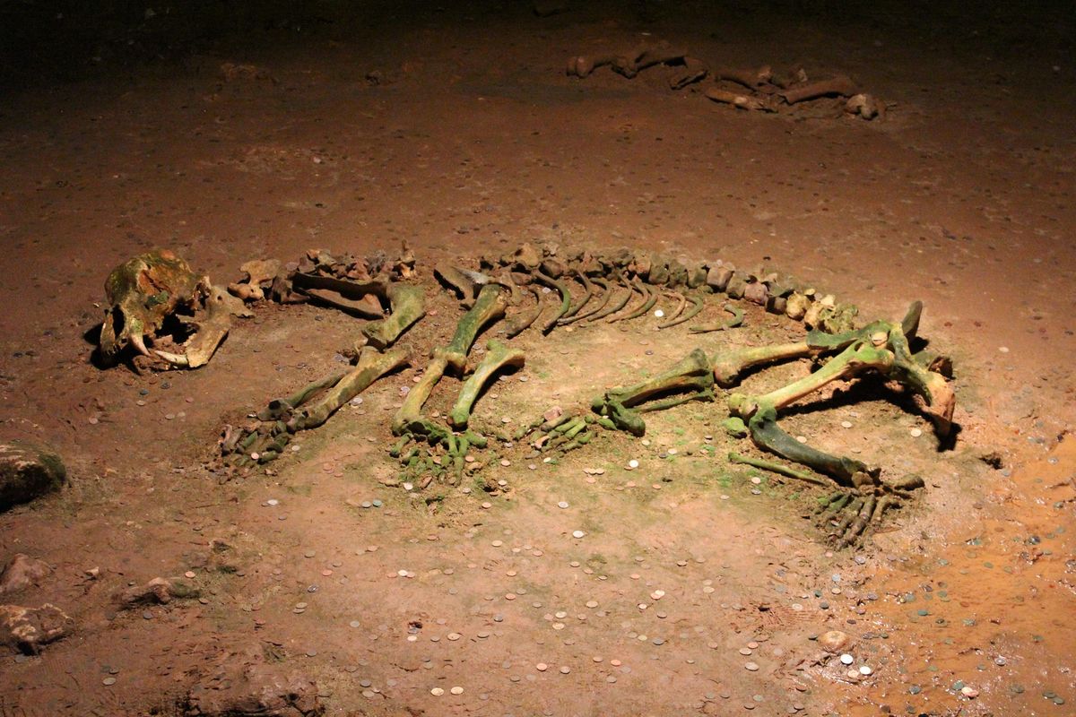 Odhalená kostra v medvědí jeskyni v Rumunsku