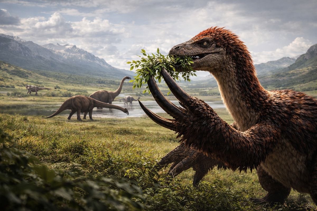 Tato krajina, bohatá na nejrůznější vegetaci, poskytovala prostor pro spoustu býložravců. Ať se jednalo o menší nebo větší druhy, dařilo se jim tu. A rostlinné zdroje, které byly nedostupné pro většinu býložravců, uměl využít jeden obří býložravec, který by na začátku dost možná působil dojmem obřího masožravce. Therizinosaurus budil dojem hrůzy pro svou velikost a svými 1 metr dlouhými třemi drápy na každé z horních končetin vzbuzoval respekt. Ačkoliv byl theropodem, k masožravému stylu života se tehdy nehlásil.