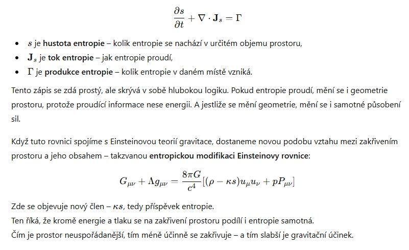 Moderní fyzika popisuje svět jako síť zákonů, které se týkají energie, prostoru a času. Energie zakřivuje prostor, prostor určuje pohyb, a čas měří jejich vývoj. Entropie se v tomto systému často objevuje jen jako doprovodný parametr – míra neuspořádanosti, jakási statistická poznámka pod čarou. Jenže právě tato „poznámka“ se ukazuje být klíčem.