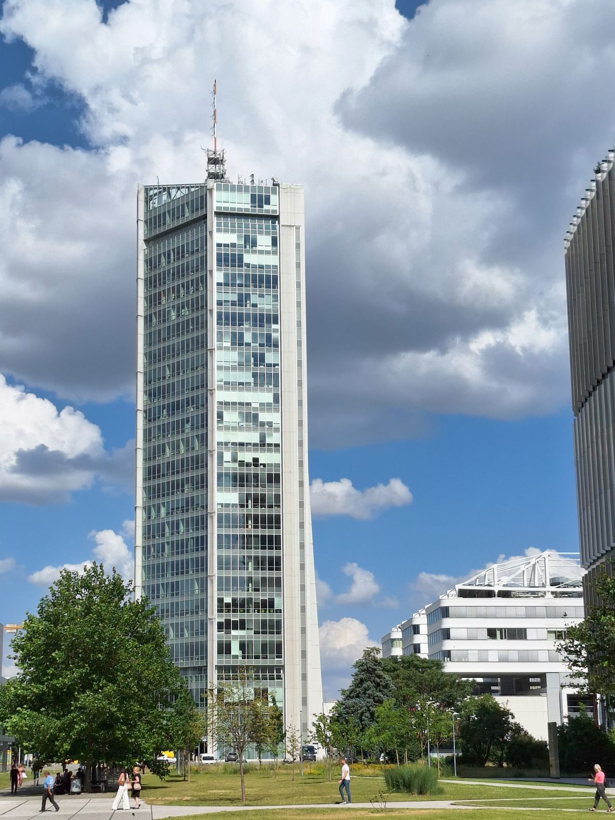 Roztočené soukolí výstavby pankráckých mrakodrapů se zastavilo s v pořadí třetí stavbou a nejvyšší z nich s konečnou výškou 109 m – dnešní City Tower.