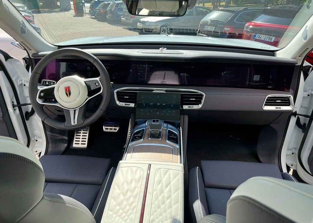 Interiér na mě dýchl luxusem, precizním zpracováním a kvalitou, která se opravdu může rovnat s tou nejlepší evropskou špičkou. Všude, kam se podíváte, najdete měkké materiály, detaily z pravé kůže, několik displejů a ambientní osvětlení, které vytváří atmosféru jako v luxusním hotelu.
