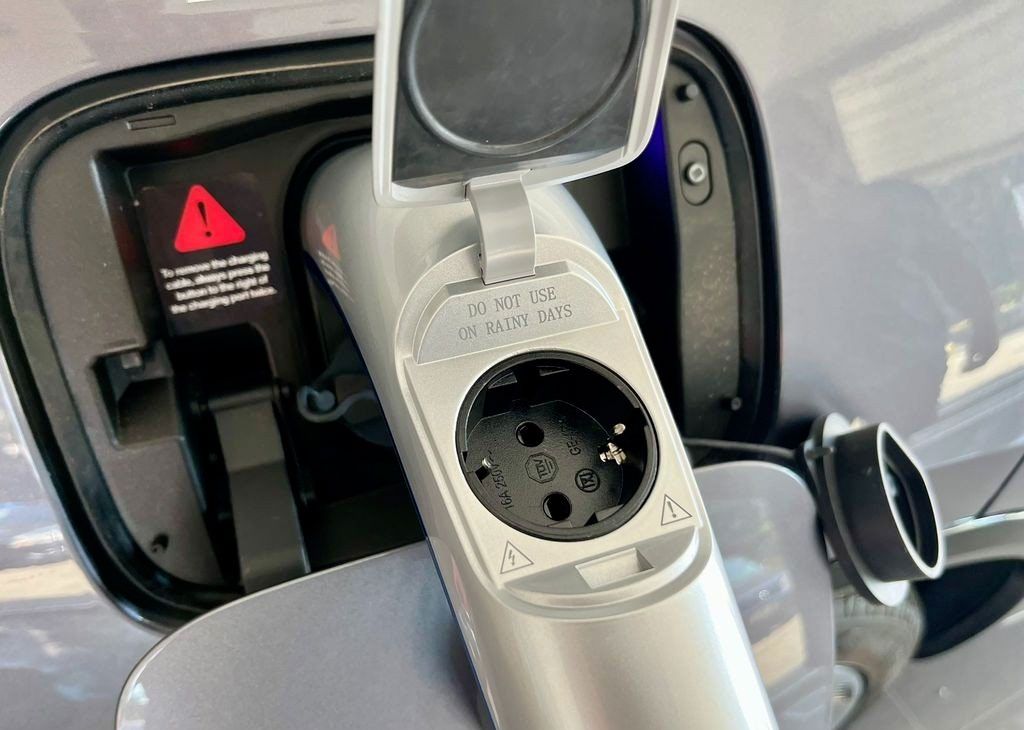 EHS-9 má mimo neuvěřitelnému množství asistentů také spousty příjemných překvapení. Jedno z nich je naprosto jednoduchá možnost nabíjet z baterie auta další zařízení - třeba svůj dům nebo chatu. A protože baterie má kapacitu 120kWh tak provoz chaty z auta by stačil na několik dní. To je super.