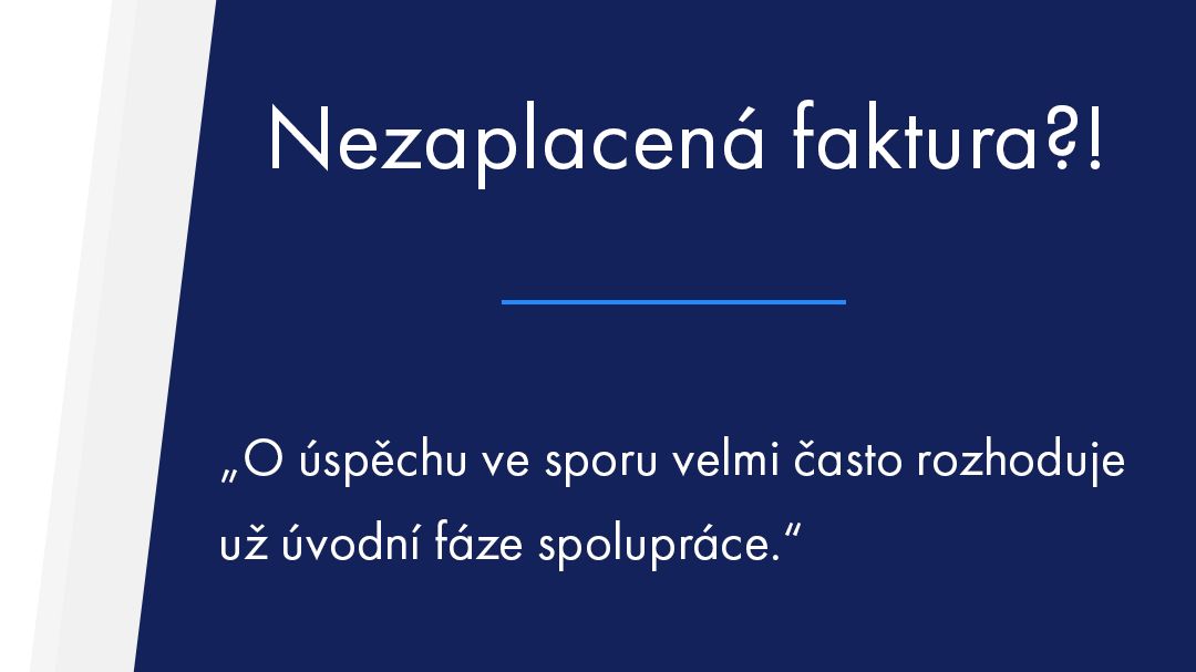 Určitě s odběratelem co nejdříve komunikovat a vyzvat jej k úhradě. Reakce odběratele v mnohém napoví, jak se k dluhu staví. Může se stát, že fakturu jen přehlédl. Často se však setkáváme s tím, že odběratel opakovaně slibuje uhrazení faktury, čímž se však v mnoha případech snaží jen získat čas a oddalovat úhradu. Případně odběratel nereaguje vůbec. Jakmile nastane takový případ, doporučuji neotálet, jednak znovu prověřit bonitu odběratele a jednak zaslat oficiální předžalobní výzvu. Z mé zkušenosti mohu říci, že mnoho dlužníků reaguje na předžalobní výzvu od advokáta daleko efektivněji, protože si uvědomí, že věřitel to s vymáháním myslí vážně.
