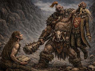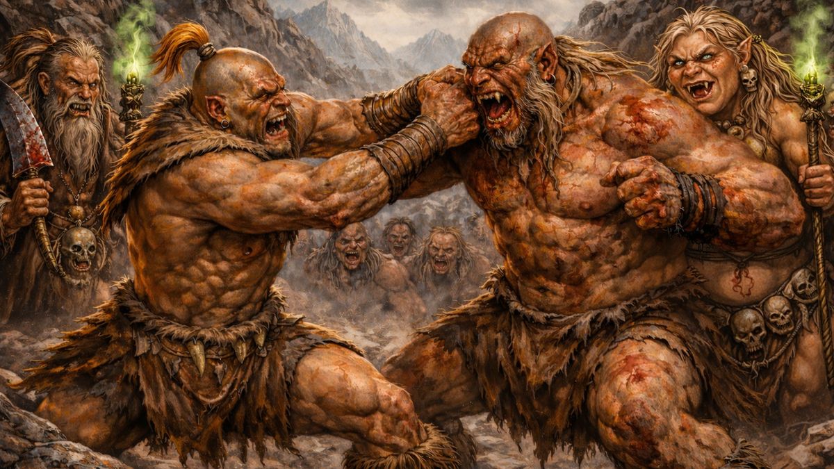 Grogg Tlustozub se rozzuřil. Ne proto, že by ho urážela morálka věci. Ogrové nemají morálku v lidském smyslu. Zuřil, protože Gorbag, jeho prvorozený syn a nejlepší bojovník, přinesl do kmene slabost. Zplodit slabé dítě je u ogrů horší než zrada. Je to důkaz, že něco je špatně s tvým masem, s tvou krví, s tvou hodnotou. A že sestra, dvojče, byla matkou, dělalo všechno ještě horším. Zkažená krev. Prokletá linie.