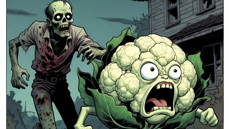 Někde jsem včera zaslechl pojem květákový mozeček a moje kreativní mysl hned začala uvažovat: „Zombíci mají mozky rádi, jakpak by tak vypadal jejích lov na chudáčka květákového mozečka?“