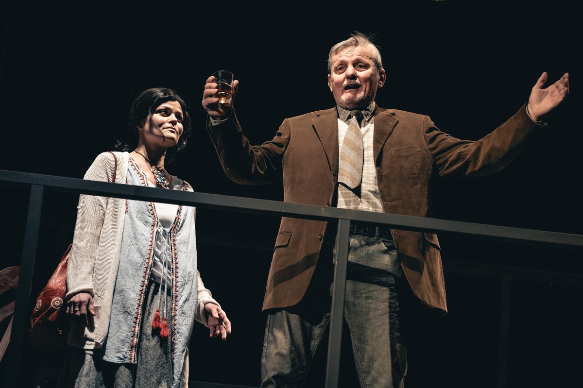 Antonie Talacková a Svatopluk Skopal v inscenaci Srpen v zemi indiánů podle hry Tracyho Lettse, kterou v roce 2024 uvedlo Divadlo na Vinohradech v režii Petra Svojtky.