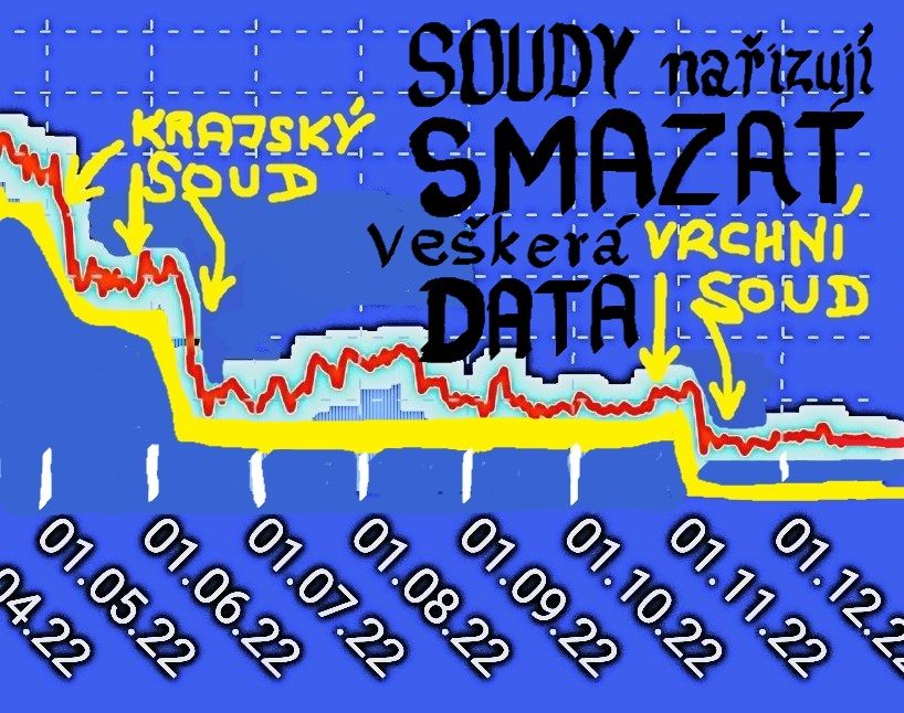 Hodně se řešilo, že Justice České republiky zabavila asi 33 kusů výpočetní techniky a málem už to vypadalo, že hard disky a paměťová úložiště budou z nařízení Soudů smazána. Nejdříve o smazání rozhodl Krajský Soud v květnu 2022 a pak i Vrchní Soud na konci října 2022. Oba jejich rozsudky a následné nabití právní moci se propisují do žluté EKG křivky pana George jako strmý pád.