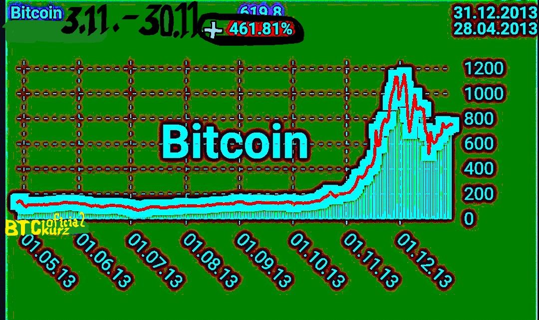 Od ledna 2012 až do října 2013 je kurz BITCOINU nezáživný na úrovni 144 až 168 Dolarů za kus.
