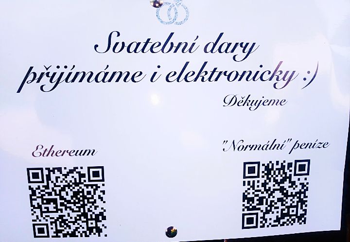Geniálním nápadem krypto svatby, byly digitální dary v podobě krypto měn, odesílané QR kódem do společné krypto peněženky budoucích manželů.
