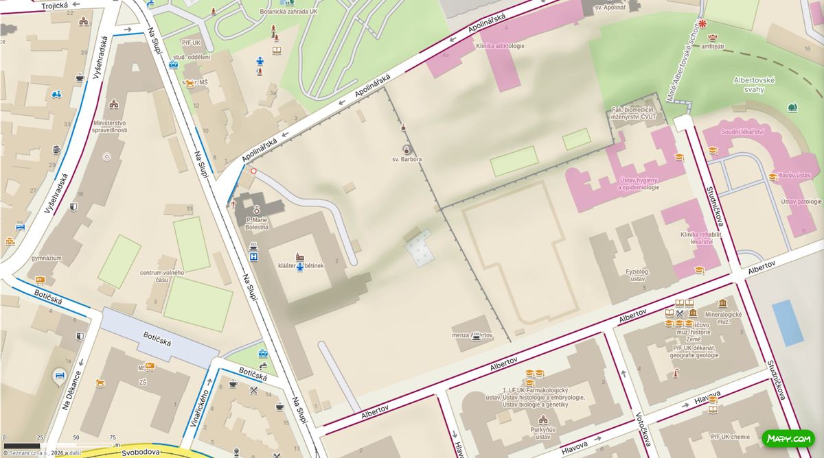 Klášter s kostelem je na Novém Městě - ul. Na Slupi a Apolinářská