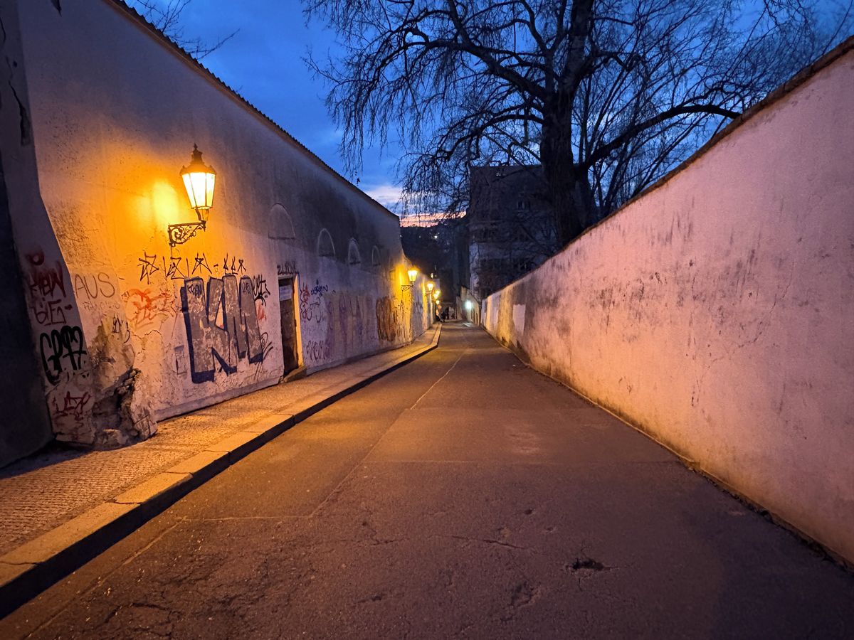 Součástí kláštera je velká zahrada se dvěma kaplemi. Od Apolinářské ulice je oddělena zdí s lucernami. Večer je tato část novoměstské Prahy nikoli nepodobná Foglarovým Stínadlům.