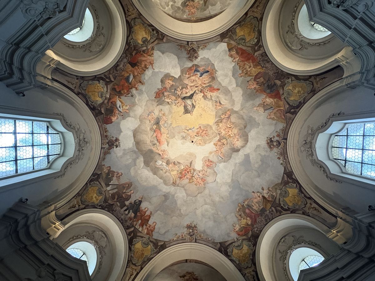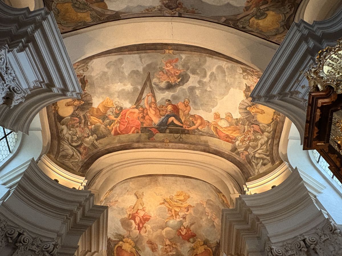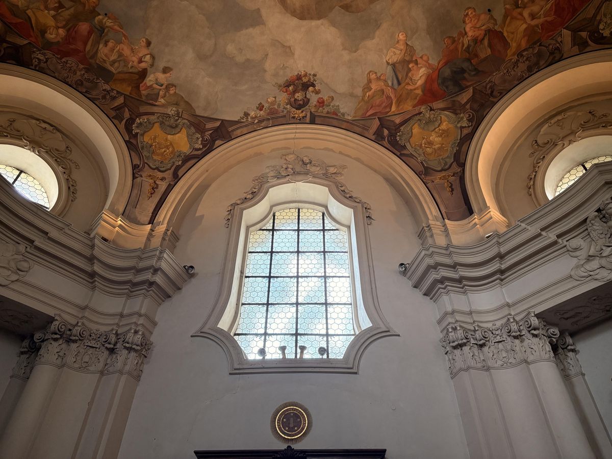 Fresky nad presbytářem - všiměte si hlavic pilastrů
