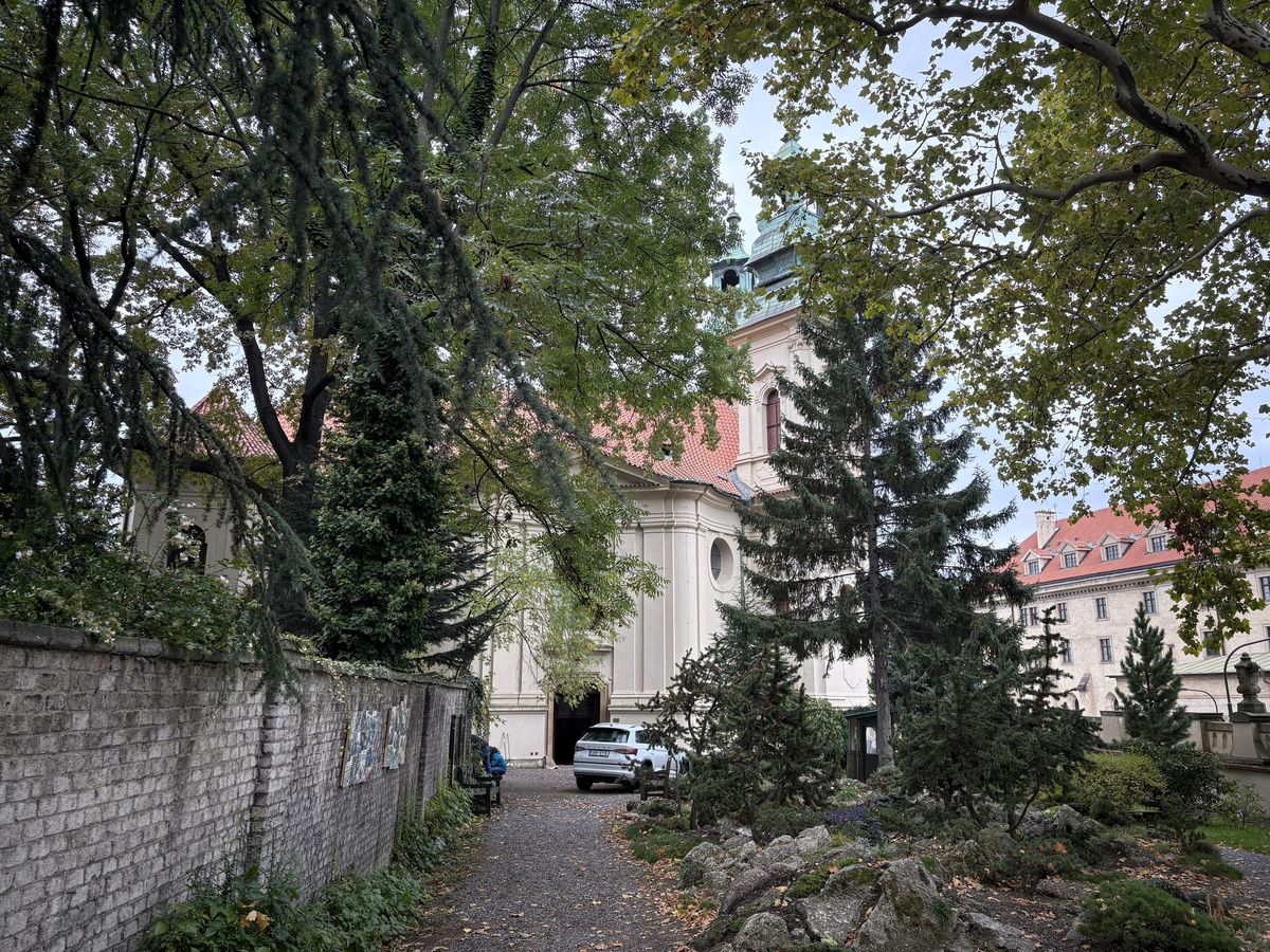 Alois Jirásek začíná svoji pověst Faustův dům takto: „Starobylý ten dům stál na Skalce na konci Dobytčího trhu, v nároží proti klášteru Na Slovanech. Chmurná byla také zahrada za domem i po jeho boku, směrem k cestě zrovna proti klášteru Na Slovanech.“ Pojďme si tedy po tomto pozoruhodném komplexu budov, kostela a zahrad udělat procházku.