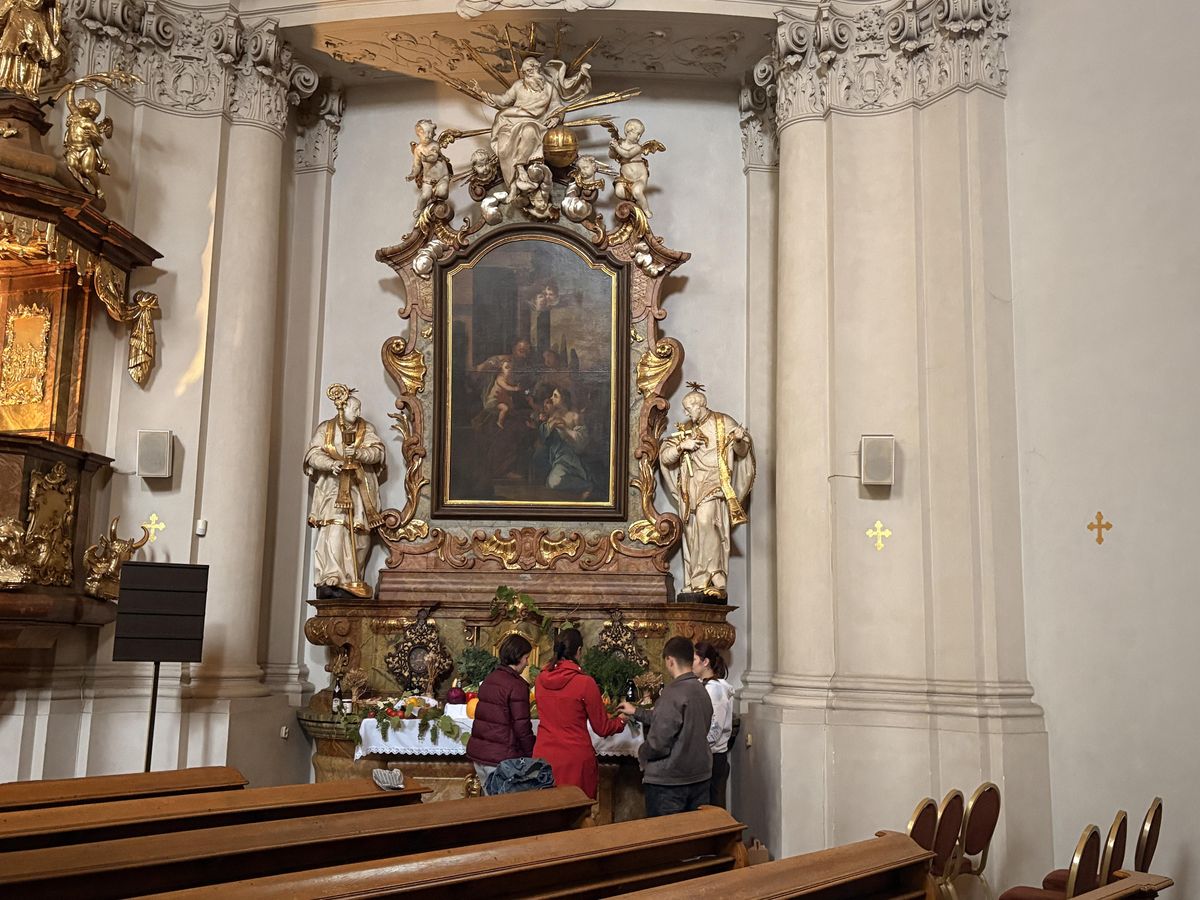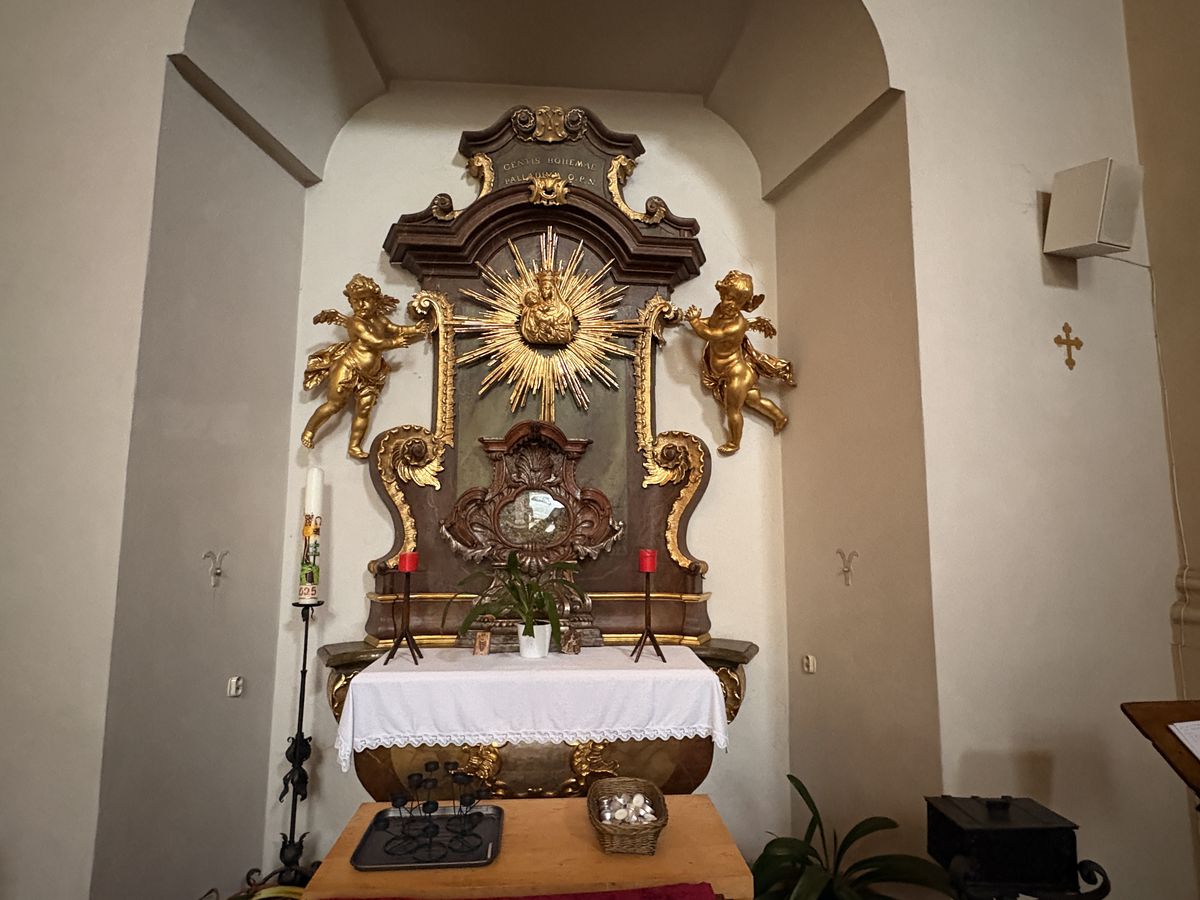Další oltáře již jen vyjmenuji: sv. Josefa, Nejsvětějšího srdce Páně, Neposkvrněného početí Panny Marie a oltář Panny Marie Staroboleslavské. Sochařská výzdoba: dílny Platzera a Jana Antonína Quitainera.