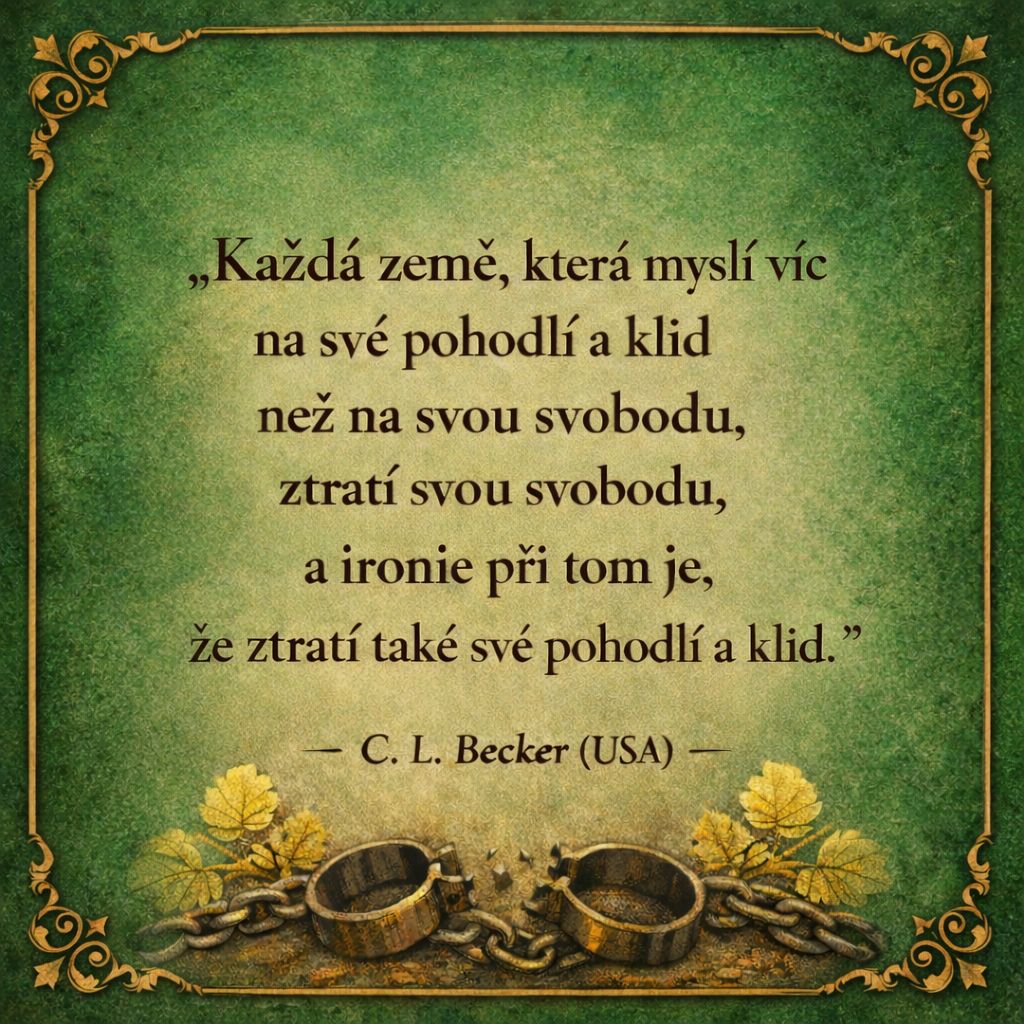 Nadporučík Lukáš řekl Švejkovi: „Telefonní rozhovory musí být jasné a krátké.“ I můj vzkaz naší vládě a jejímu předsedovi bude jasný a krátký. Čtu nyní paměti brněnského novináře a spisovatele Čestmíra Jeřábka (1891 - 1981) „V zajetí stalinismu.“ Dne 19. dubna 1948 autor uvedl, že dočetl vzpomínky z minulé války „Přichází zúčtování“. Knihu sepsal skotský diplomat a novinář Robert Bruce Hamilton Lockhart (1887 - 1970). Pan Jeřábek si zapsal myšlenku amerického dějepisce Carla L. Beckera (1873 - 1945). Lockhart ji do svých pamětí zařadil jako úvodní motto a já jako úvodní obrázek.