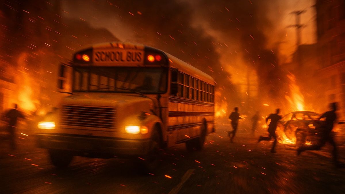 Je vyhlášena evakuace, která se týká i jedné ze škol. Pro mnoho dětí si přijedou vyděšení rodiče, ale někteří by nedorazili včas. Proto povolají školní autobus, přičemž Kevin je zásluhou své nevalné pracovní disciplíny nejblíže. Proto je mu tento důležitý úkol svěřen. Nápomocná mu bude učitelka Mary, která dostala třídu na starost. Bohužel oheň je už za rohem. Budou se muset probojovat skrze hustou dopravu, kouř a plameny, aby se všichni společně dostali do bezpečí.