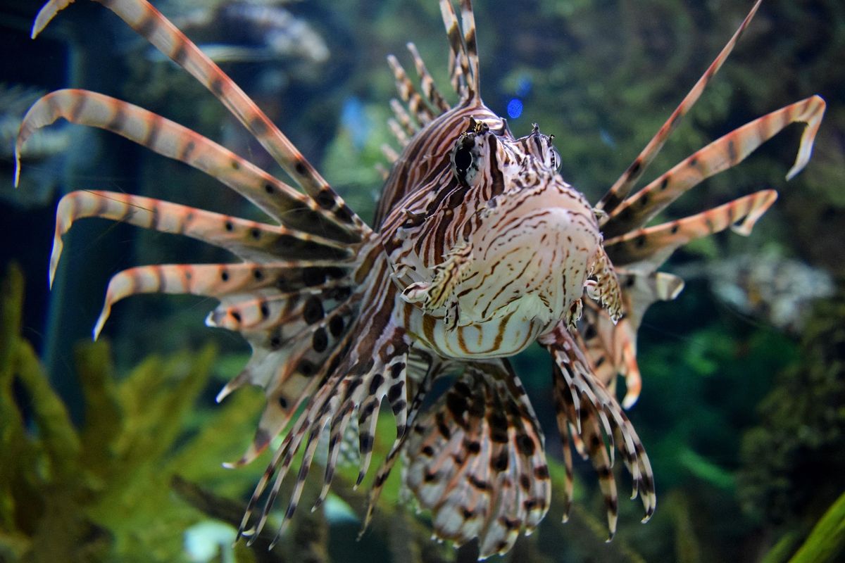 Perutýn ohnivý je běžný obyvatel korálových útesů