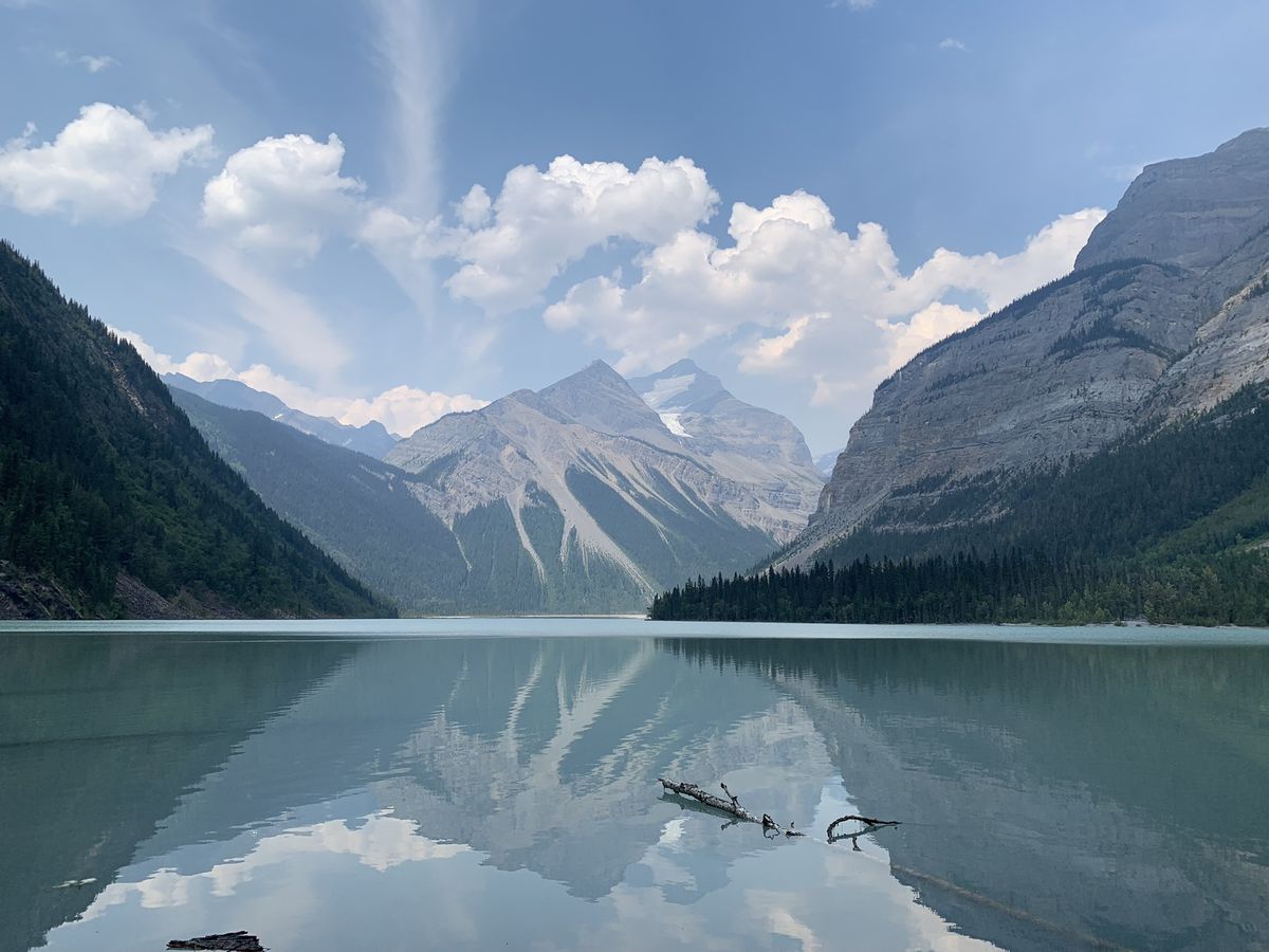 Hned ráno vyrážíme na další naši jednodenní tůru k jezeru Kinney Lake pod slavný Mt.Robson (3.954 m). Hned na parkovišti na začátku trailu se nám zjevuje tato gigantická ultraprominentní hora v celé své kráse. Příjemná procházka k jezeru je na necelé 3 hodiny. Škoda, že nemáme více času, je zde totiž velice známý a populární Berg Lake Trail, který se chodí s přespáním ve stanech za 3-4 dny. Scenérie kolem jezera je naprosto úchvatná. Nemůžeme se na tu krásu vůbec vynadívat. Po cestě zpět se ještě zastavujeme v informačním centru provinčního parku a dáváme si zmrzlinu a kávu v přilehlé kavárně/restauraci na benzince. Dnes nás ještě čeká dlouhých 350 km do Kamloops, kam přijíždíme až večer. Již z dálky je vidět kouř z velkého lesního požáru jen několik kilometrů jižně od města.