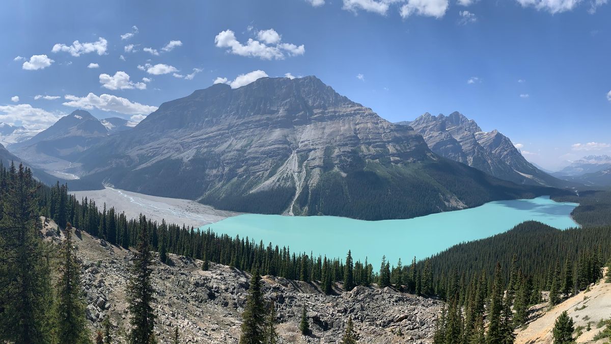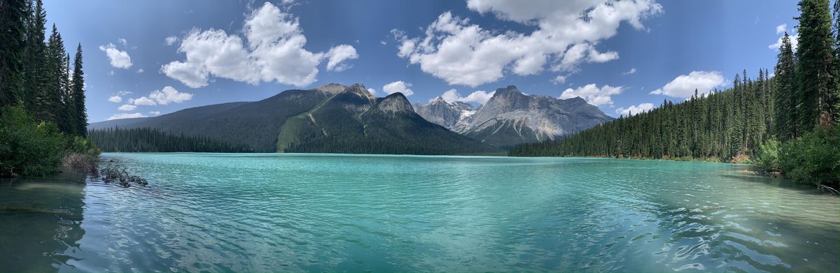 Tento den nás čeká prozkoumání dalšího národního parku Joho. Nejprve se zastavujeme u vodopádů Natural Bridge a pak se vydáváme na krátkou procházku kolem jezera Emerald Lake. Na břehu jezera je vybudován rekreační komplex s restaurací, my však vyrážíme dál kolem jezera, kde se následně poprvé koupeme ve studené horské vodě z ledovců. Následně přejíždíme do vedlejšího údolí k Takakkaw Falls, údajně druhým nevyšším vodopádům v Kanadě, ale kdo ví jestli… Nicméně scenérie vodopádů vytékající z ledovcového jezera a řítících se kolmou stěnou dolů do údolí je úchvatná. Ještě tentýž večer přejíždíme do Lake Louise, který již leží na území národního parku Banff v Albertě. Ve večerním slunci se nám ukazuje v plné kráse Mt.Temple (3.545 m).