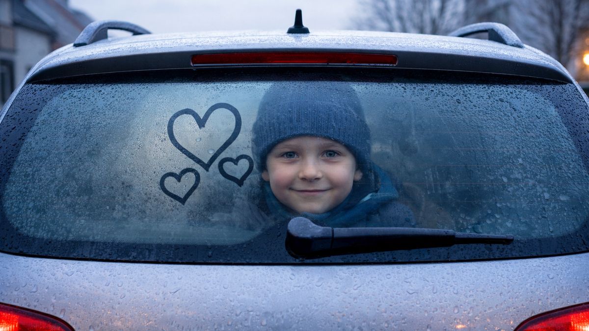 Sama jsem spěchala do práce, když jsem však Jesse objala na rozloučenou, všimla jsem si, že něco napsal na zmrzlé okno mého auta. Napsal tam: „Mám tě moc rád,“ a pod tím byla namalovaná tři pěkná srdíčka. Dojalo mě to a rozhodla jsem se, že zaběhnu do domu pro mobil, abych si to mohla vyfotit. Bylo chladné prosincové ráno, slunce zářilo a já jsem postavila Jesse před jeho krásný vzkaz a nasměrovala fotoaparát tak, aby zachytil jak Jesse, tak i jeho slova. Pak odjeli a to bylo naposledy, co jsem viděla svého syna živého.