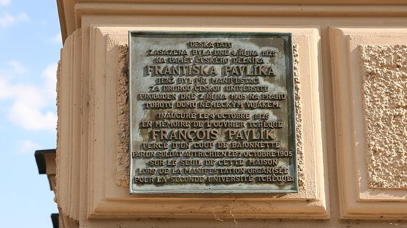 A nám dnes zůstává jen ta nenápadná deska na Besedním domě. Procházíme kolem ní téměř denně — a většinou si jí ani nevšimneme.