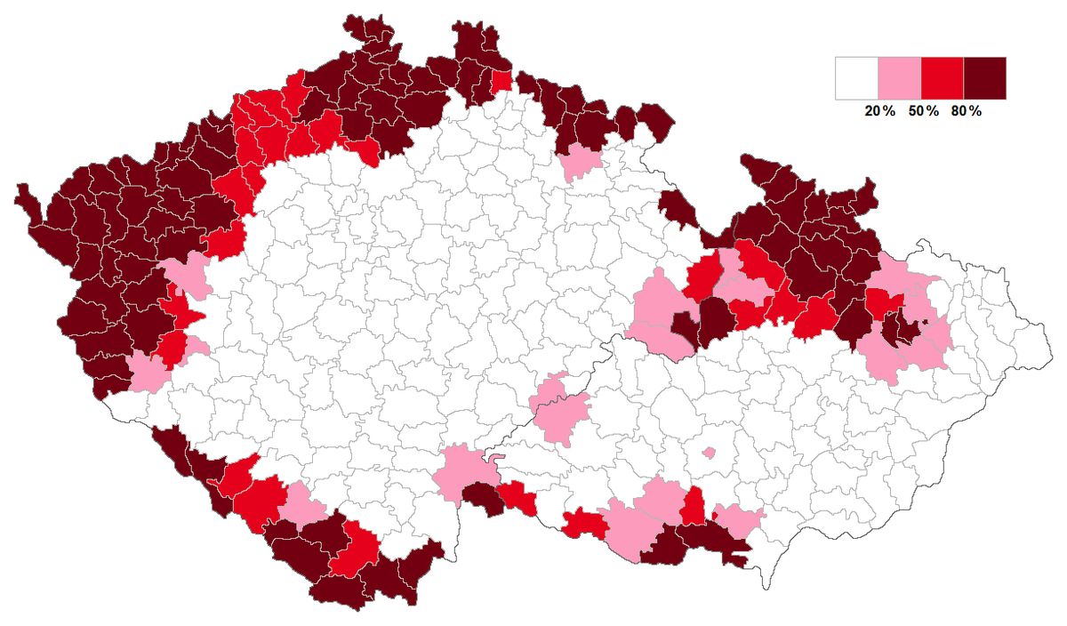 Procentní podíl německého obyvatelstva v soudních okresech podle sčítání lidu roku 1930