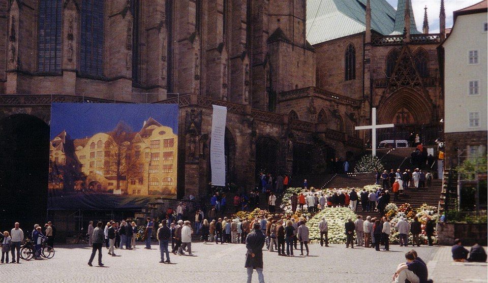 Přesně týden a hodinu po činu, v pátek 3. května, se na erfurtském náměstí uskutečnil pietní akt. Tehdejší spolkový prezident Johannes Rau vzpomněl na všechny oběti masakru. Připomněl i samotného střelce, když prohlásil: Cokoliv člověk udělá, zůstává člověkem. Piety se účastnili i Steinhäuserovi příbuzní, kteří ale byli pro jistotu chráněni před veřejností a sledovali akt z okna nedaleké budovy. Celkem zde bylo přes 100 tisíc lidí.